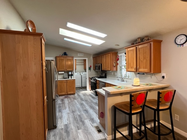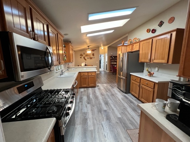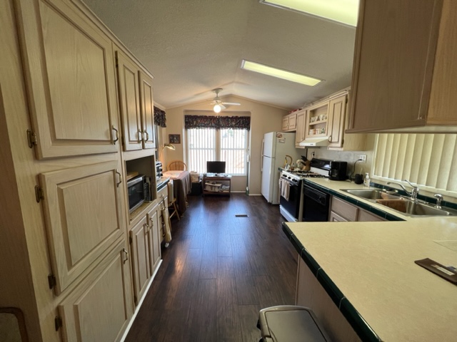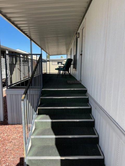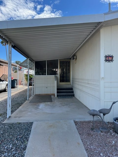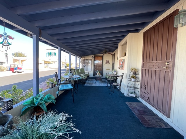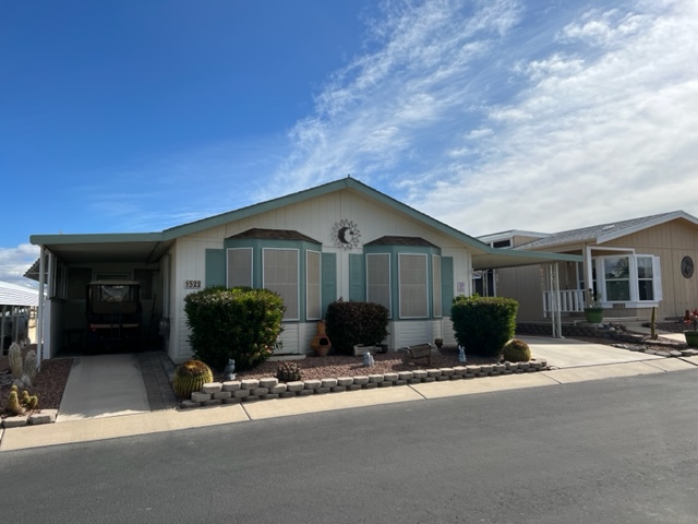 Don’t miss out on this incredible well-kept 1996 Palm Harbor home with 2 BRs/2 Baths,1,392 SF and an AZ room that greets you upon entry. The kitchen has beautiful laminate flooring, gas stove, newer fridge which was replaced in 2021 and an abundance of cabinets. The master and secondary BRs are huge, and both have large walk-in closets. The master bath has a walk-in shower and dual sinks. This home offers a newer roof which was replace 2011, a newer water softener installed 2022, exterior of home painted in 2021, wood skirting, metal privacy shades on carport side and the was home leveled 2022. The covered porch offers addition outdoor living space. The custom storage shed has exterior flood lights, shelving, electricity and could be used for a workshop. The washer/dryer was replaced in 2020 and remain with sale of home. There’s a common area across the street to the west and there’s no neighbors in front of the home. Call now for a showing before this one is sold!