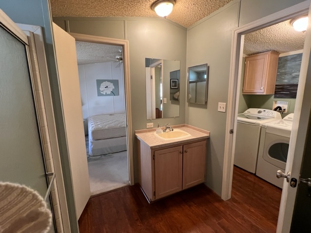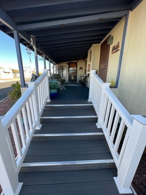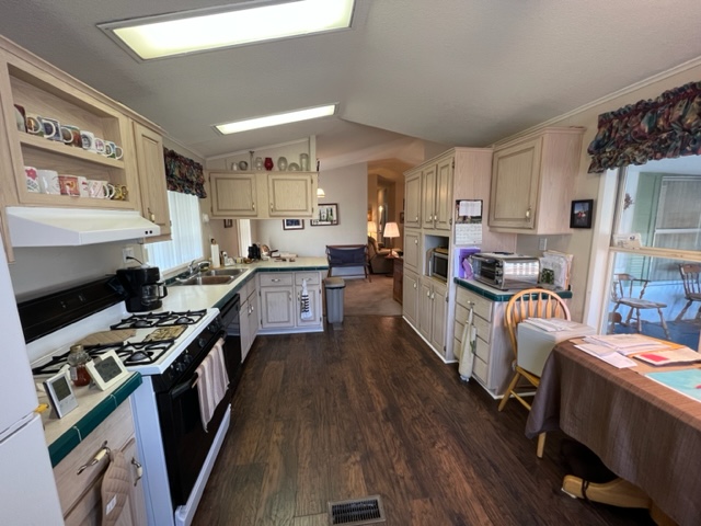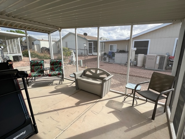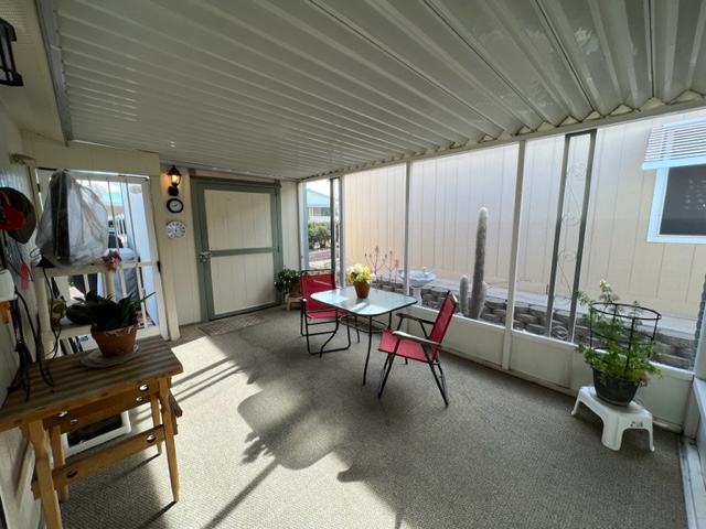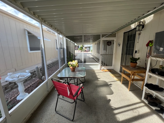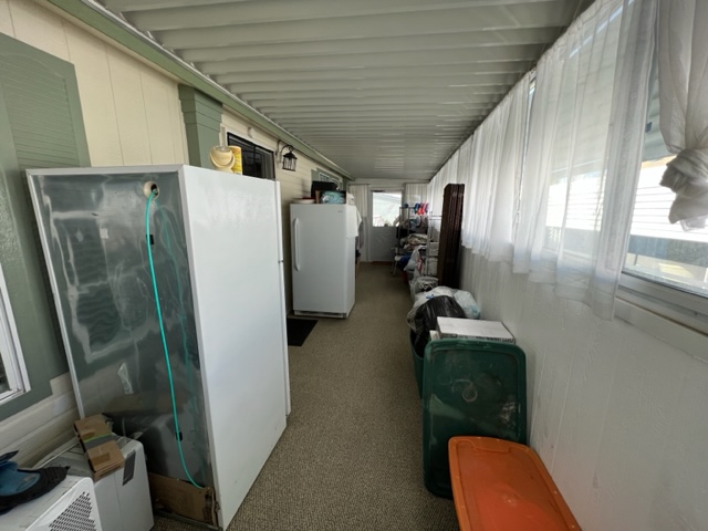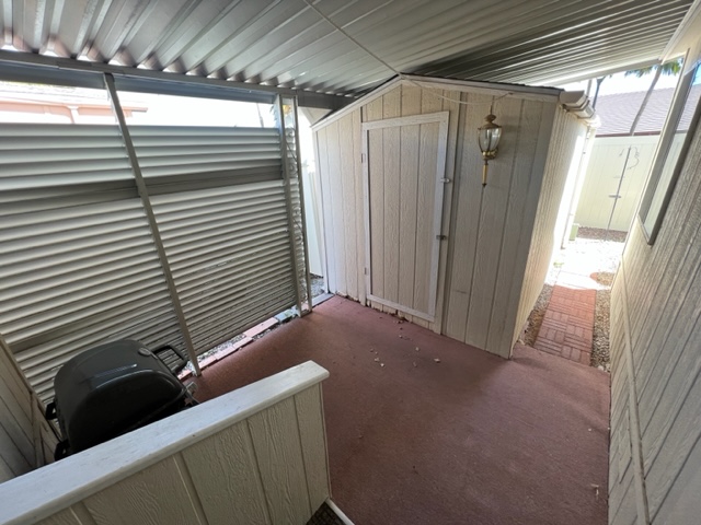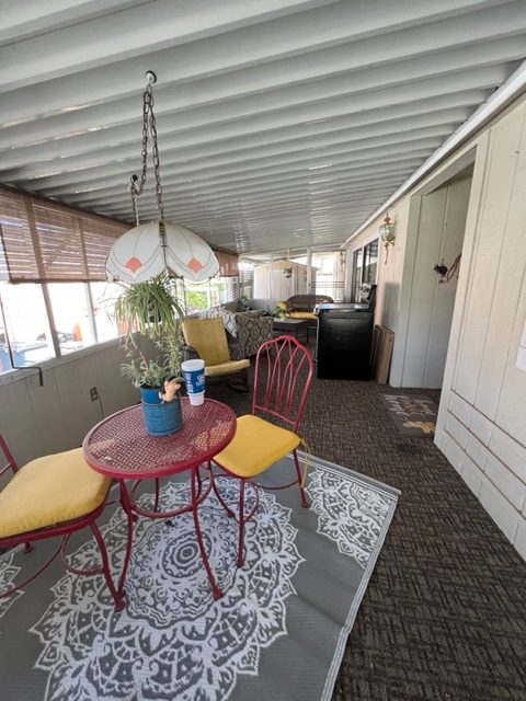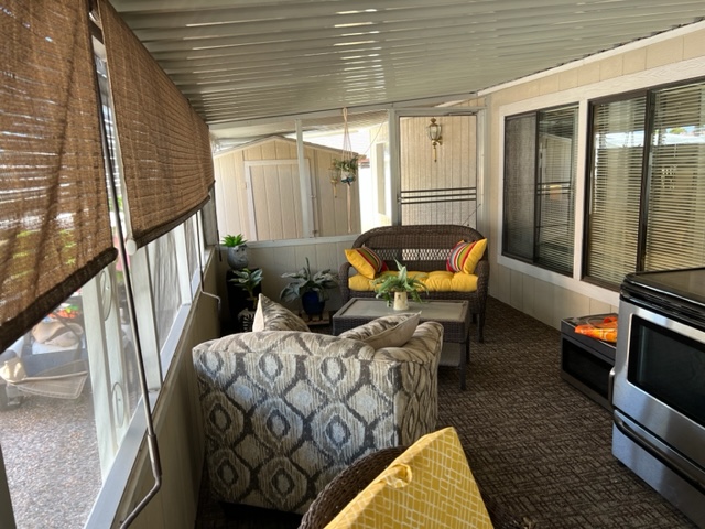 Don’t miss out on this beautiful 2007 ground set Cavco home with 3 BR/2 Baths and sits on an oversized lot! This home boasts 1,296 sf, semi open living concept, relaxing screened in patio off carport, AZ room that adds approximately 200 sf of extra indoor/outdoor living space and small screened in dog play area off AZ room. You’ll walk up to the welcoming covered entry way leading to the relaxing AZ room. Upon entering the home, you’ll notice the gray/brown wood shade laminate wood flooring, neutral interior paint, beautiful sky light windows in LR. The large kitchen has shaker style cabinets, ample storage, and SS appliances. The windows have 2” white faux wood mini blinds on them. The large laundry room comes with washer/dry that will convey with sale of home. The oversized shed can be used as a workshop and has electricity, shelving, and work bench. The carport has metal panel screens covering part of it for shade and extra privacy. This home sit within walking distance to community pool and park. Call now for showing before it’s gone!
