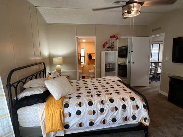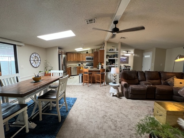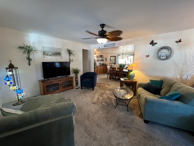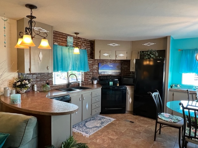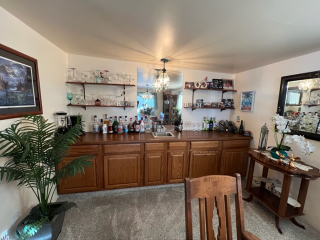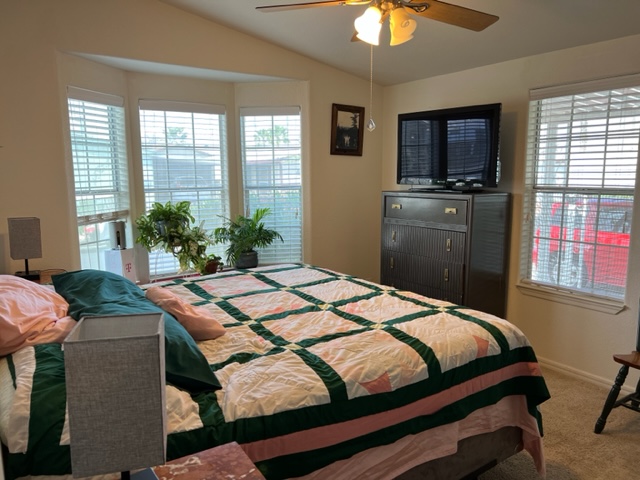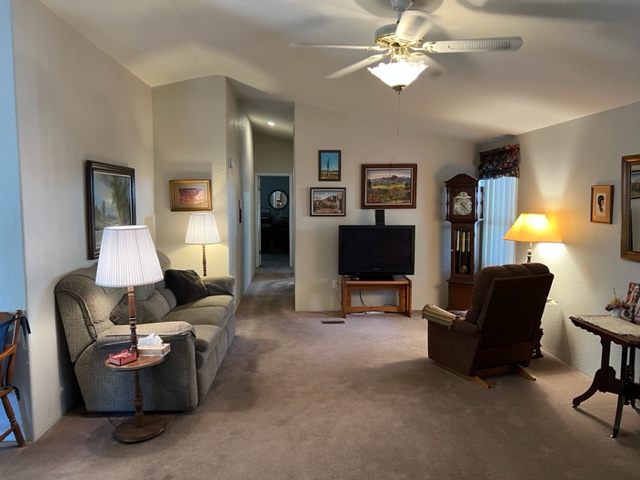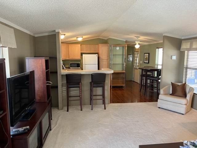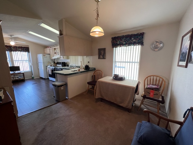 This AMAZING, updated home has two additions adding approximately 550 extra livable square footage and sits on a corner lot across the street from the clubhouse! Home is a 1982 Redman with 2 BR’s/2 Baths offers electric fireplace, formal dining room/den with beautiful built-in bar with sink and a bonus room currently being use as a guest suite. The airy, bright kitchen has an eating nook and black appliances. The beautiful master BR has plush carpet with an adjoining remodeled master bath. The huge secondary bath offers access to guest suite and hallway. There’s a large walk-in closet off hallway adding an abundance of storage. There are two attached storage rooms, one of which can be a workshop and an enclosed golf cart storage building. Washer/dryer and water softener will remain with sale of home. Call now for a showing!