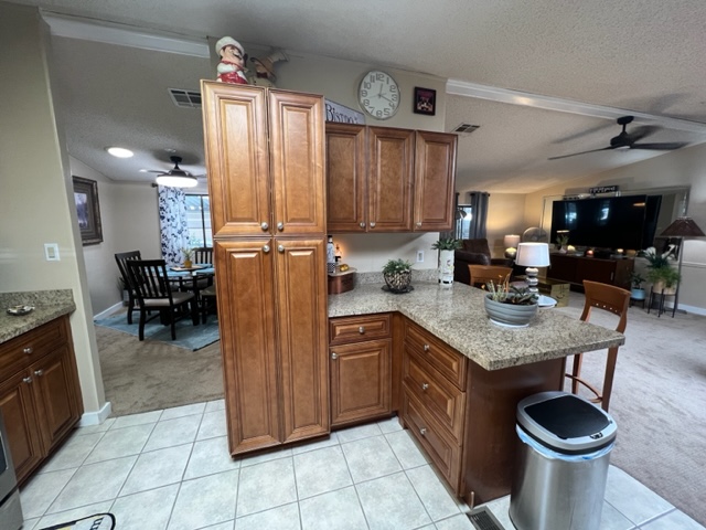 Enjoy living in this beautiful 1988 Fuqua with 3BR’s/2 Baths and a gorgeous, remodeled kitchen. You’ll enter the home through the large, relaxing screened in porch. The kitchen has granite countertops, SS appliances, ample storage in the upgraded cabinets, built in microwave and upgraded sink/facet. The dining room offers a sliding glass door that leads to the large, covered porch. There’s a bonus room off the kitchen that can be used for a formal dining room, study, or den. The large master BR has a huge walk-in closet with custom built shelving and rods. The laundry room is a great size and offers lots of cabinets and a dedicated space for an extra fridge or freezer. Ceiling fans have been upgraded throughout home. The shed behind carport has electricity and shelving. There are low placed lights on the skirting to illuminate the length of the carport. The screened in front porch leads to a small, covered patio area for extra outdoor living space. Park your golf cart in the designated covered parking area. Don’t miss out on this one! Call now for a showing before this one is gone!
