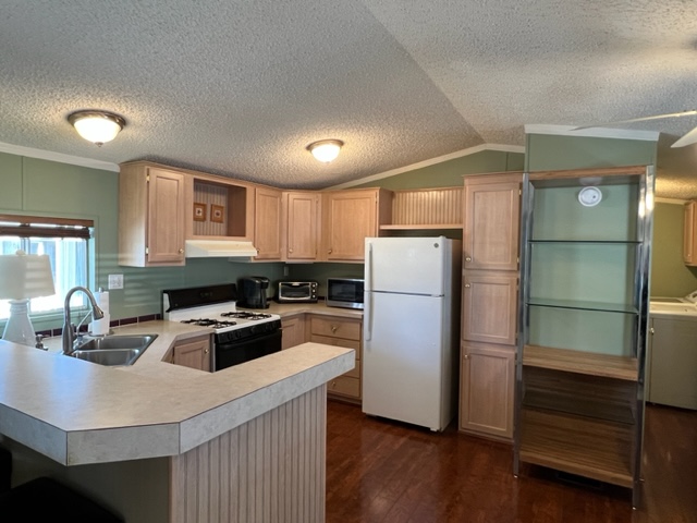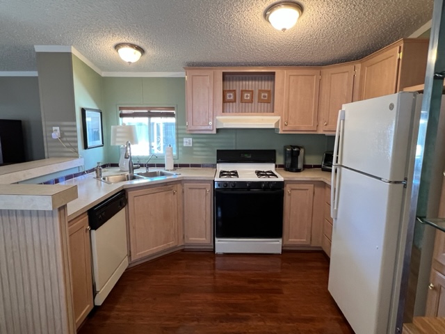 Don’t miss out on this turnkey opportunity! This amazing 2000 Palm Harbor with 2BRs/2 Baths comes furnished. This home offers a split floor plan with 960 sq ft and both bedrooms can be considered masters with adjoining bathrooms. Upon entering the home you’ll notice the décor offers a serene, relaxing living environment. There’s a combination of beautiful wood plank flooring and carpet throughout the home. The kitchen has white appliances and ample cabinet space. Enjoy evenings relaxing on the large covered front porch with low rise stairs. This home also comes 2” faux wood mini blinds, water softer with reverse osmosis, gas pack system and a large shed that’s in great condition. Washer and dryer will remain with sale of home. Call now for a showing!
